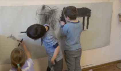 - Zusammenarbeit im Ringen um Form und Inhalt der Zeichnung: Die Kinder intensivieren den Dialog in Bezug auf eine bestimmte Zeichnung und bringen diese mit Vorschlägen, Fragen und Assoziationen weiter.