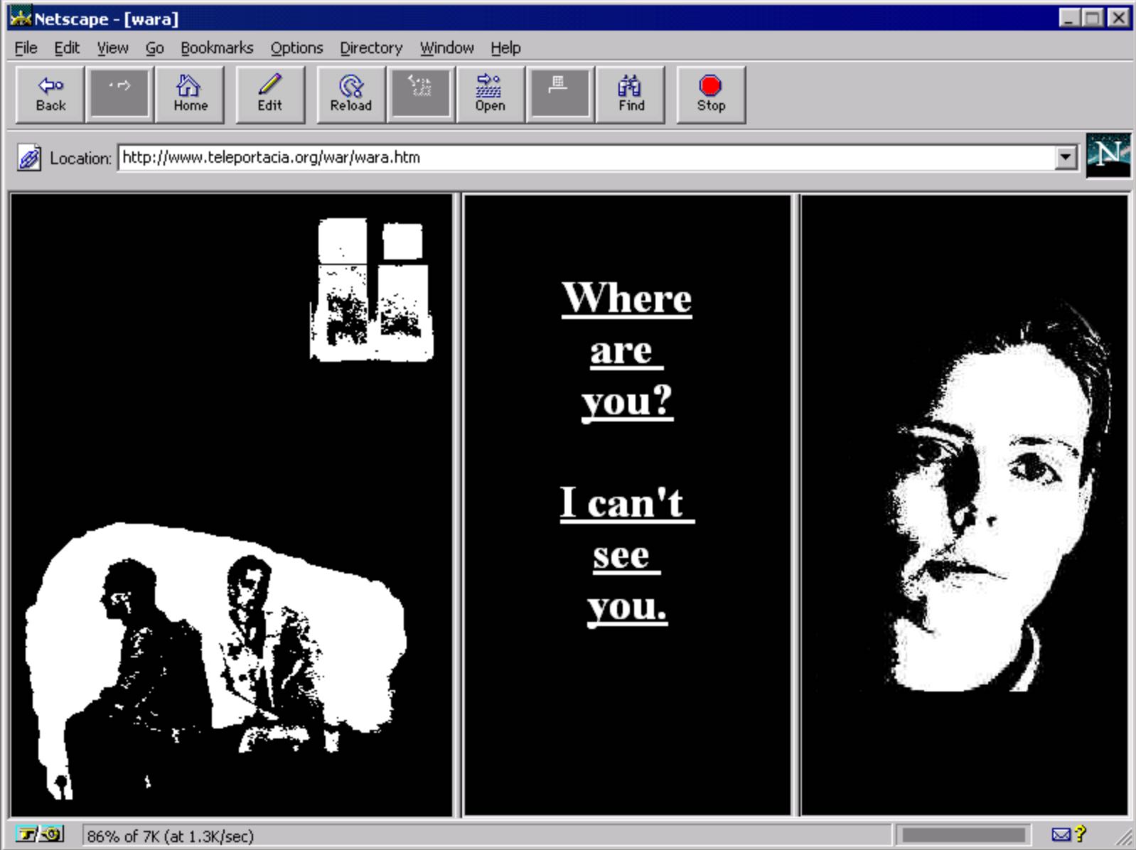 Lialina, Olia. Browser-Drama My boyfriend came back from the war, 1996 (Screenshot 2020). Abrufbar auf https://sites.rhizome.org/anthology/lialina.html.