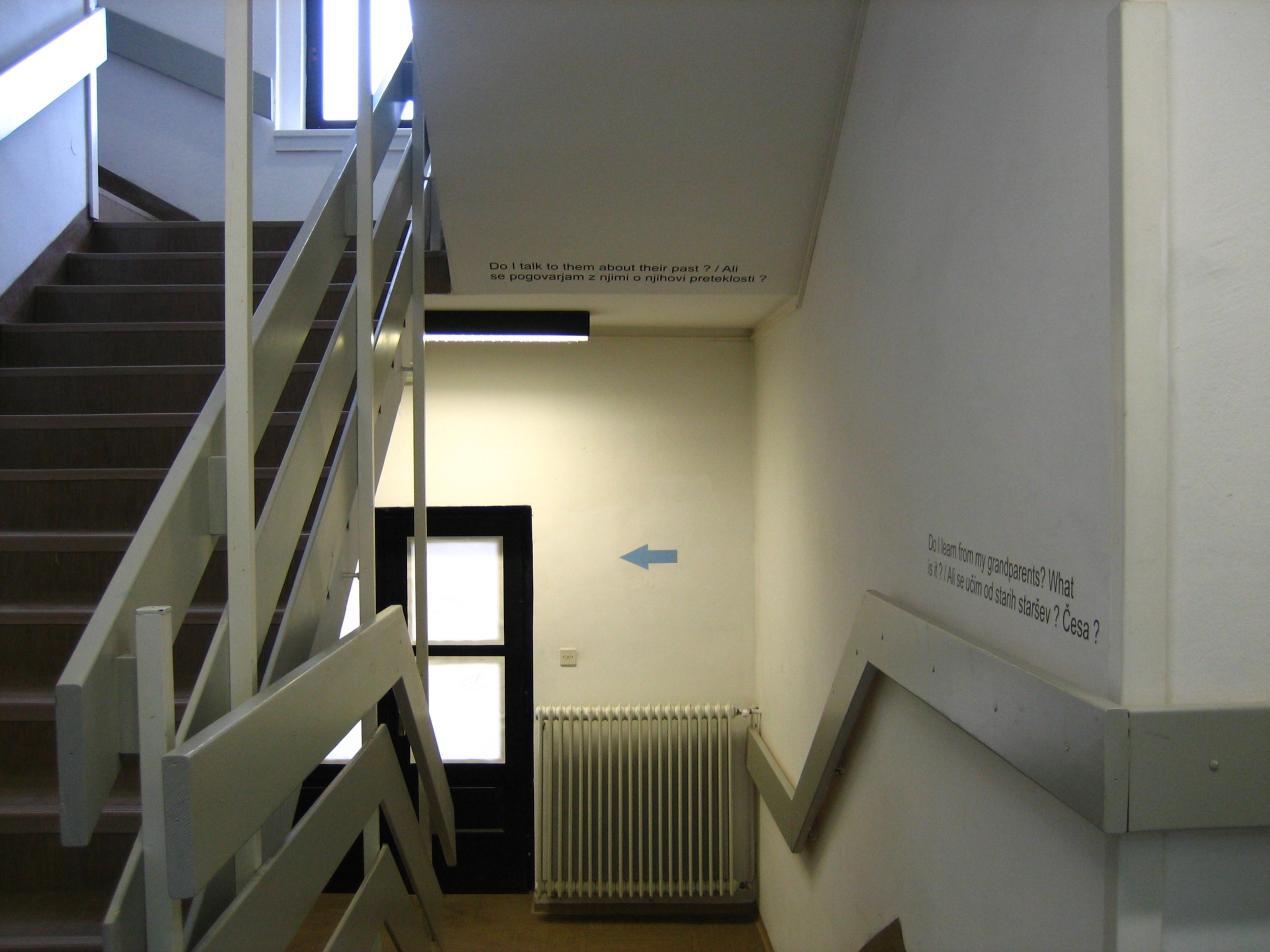 Fragen schaffen Anlässe! Nachdem meine Großmutter gestorben war, fanden wir ein Reisetagebuch, welches sie zusammen mit drei anderen Freund*innen Anfang der 1930er Jahre geschrieben hatte. Die Frage nach dem Leben meiner Großmutter nahm ich zum Anlass, die Ausstellung As in real life im P74 in Ljubljana zu entwickeln. Besucher*innen mussten, um in die Ausstellung zu kommen, zunächst durch das Treppenhaus eines Schulgebäudes gehen. Ich nutzte Fragen, um sie an die Hand zu nehmen und gleichzeitig auf das Thema einzustimmen. Die Fragen wurden so auch von den Schüler*innen gelesen, die täglich dort ein- und ausgingen und auf die Art auch eingebunden wurden, wenn sie Fragen lesen konnten wie: Habe ich etwas von meinen Großeltern gelernt? Was ist es? Was haben sie gemacht, bevor es mich gab? Bin ich ihnen ähnlich? An was erinnere ich mich am meisten, wenn ich an sie denke?